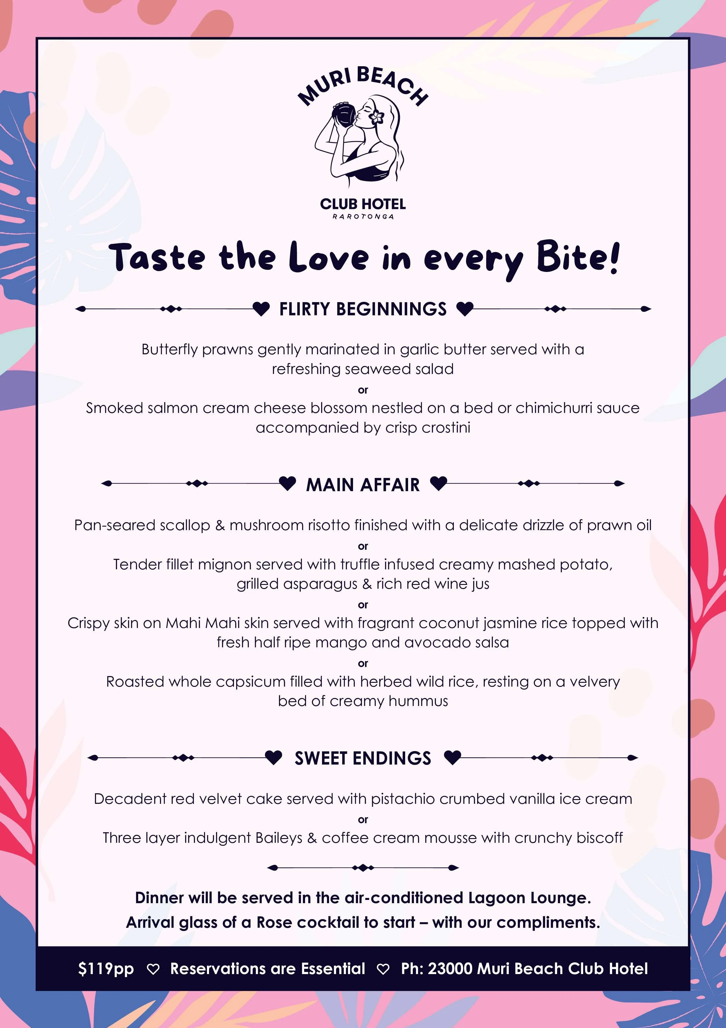 Email info@muribeachclubhotel.com OR phone +682 23000 for bookings and enquiries.